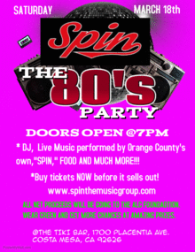 Headlining the event will be Orange County's very own band - "SPIN" which will be playing a night of 80's music.